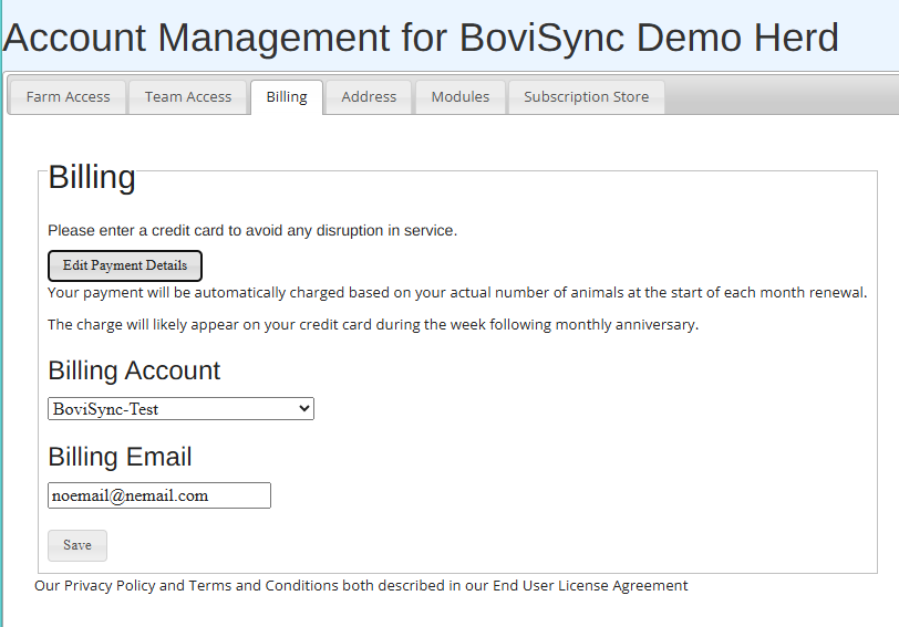 If you have multiple BoviSync herds and would like to have all herds billed to a single account, you must define the billing account. The article will walk you through how to configure this in BoviSync. You must have Admin permissions at all ...