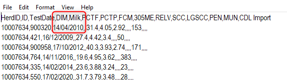 For the monthly milk test information, the file needs to have the BoviSync herd code in the file name and first column of the import file. You can either do this manually or for convenience, you could include the TXT file called, HERDCODE.TXT and in the first line of the file enter your BoviSync Herdcode number (must be an 8-digit integer). This is used to verify the correct file when importing the milk data.