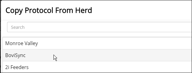 Select BoviSync as the herd to copy the protocol from.