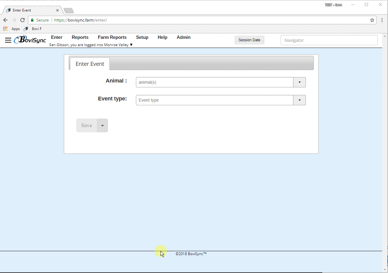 Once you are at the enter event screen you will need to enter all of the information for the Fresh event. First, enter the animal ID, then, enter 'Fresh' for Event type (if the fresh event type was not already entered in step 1). As soon as you do that you will see all of the fresh event fields display.