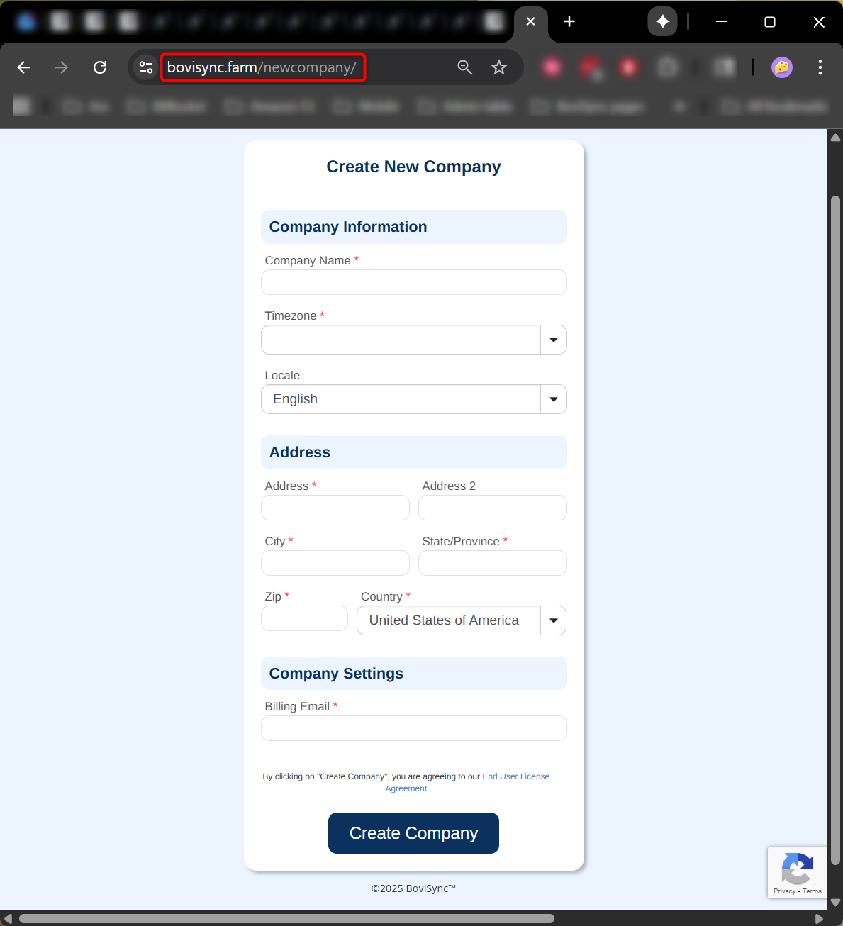 - To begin, please create a new user account in BoviSync that will be used as the admin for the company. Instructions on creating a new user can be found here, or go directly to https://bovisync.farm/newuser/.