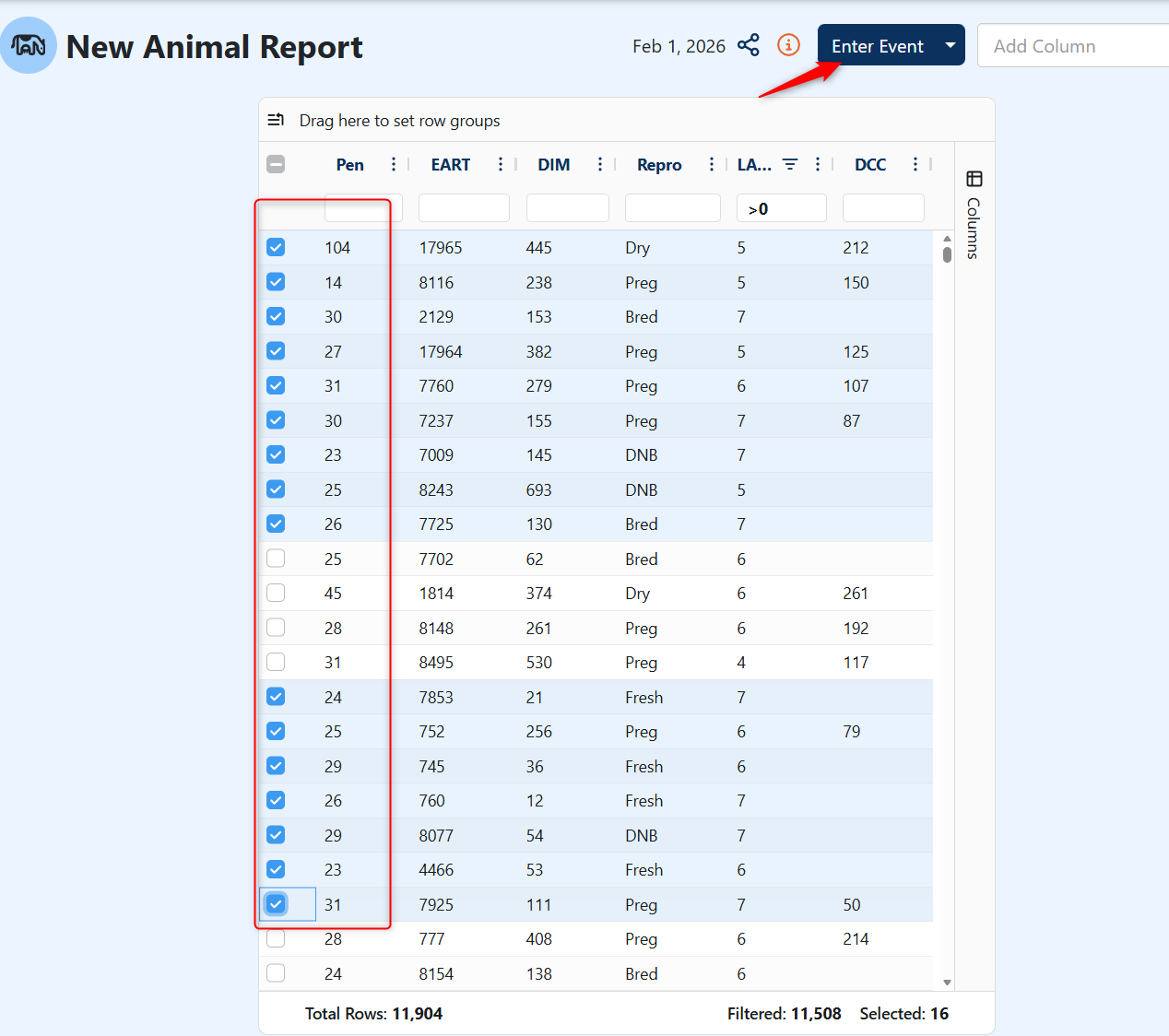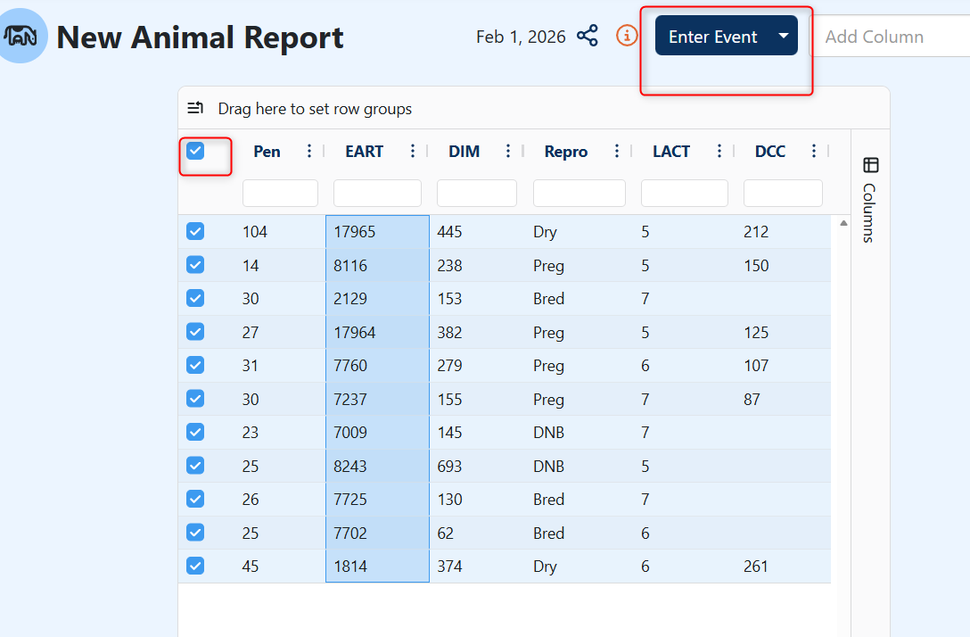 Select desired animals from the report