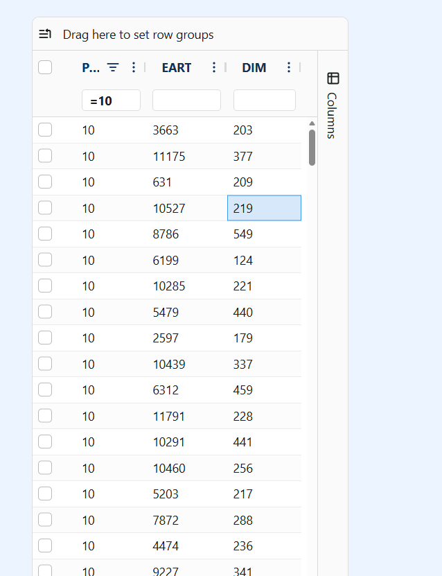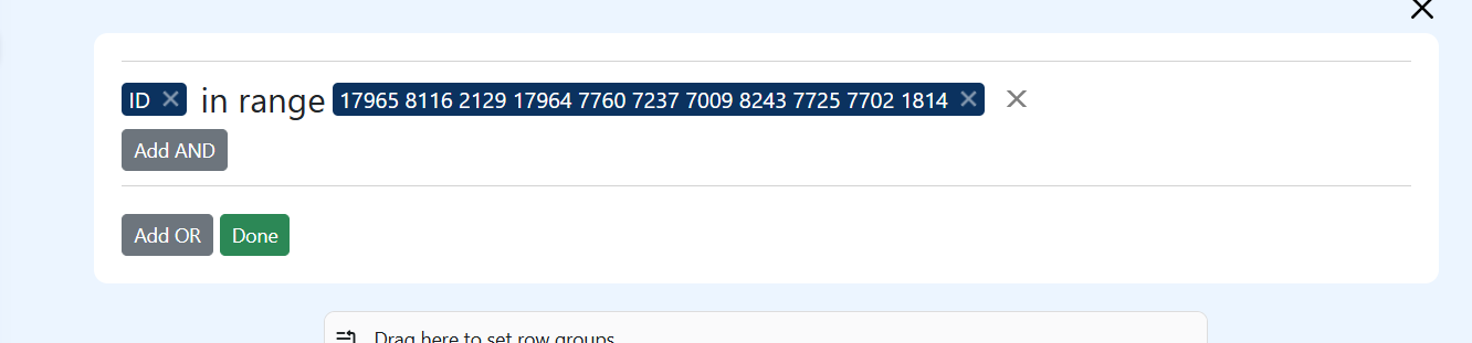Add a filter: eartag in range (paste copied eartags