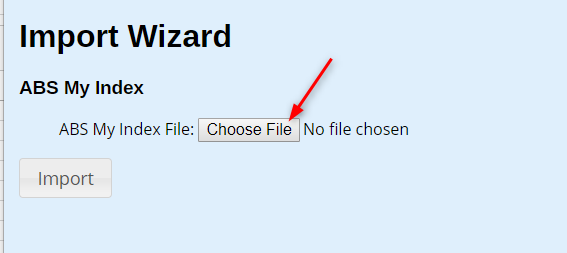 From the dropdown menu on the Import Wizard select ABS My Index. Once selected click Continue.