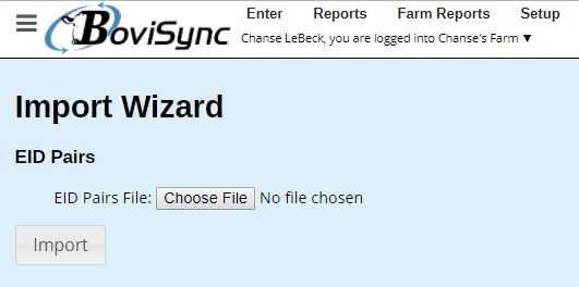 When buying eartag-EID sequences, the tag supplier generally will or can provide you with a CSV file of the eartag and EID pairs. You can import this file with the sequence of numbers into BoviSync. BoviSync will then automatically assign the EID for new calves (and hide the EID field), update missing tags if you get the file in late, and provide a summary page that displays inventory numbers of available/used tags. If your tag supplier did not provide you file a pair file,