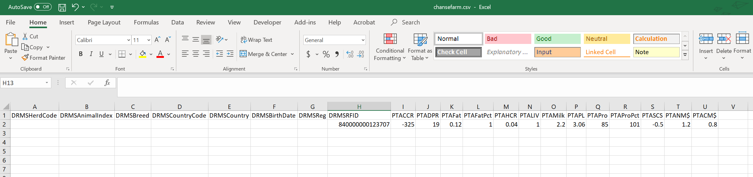 Column 8 (DRMSRFID) has to be entered as the registration ID in BoviSync or the PTA values will not be updated.