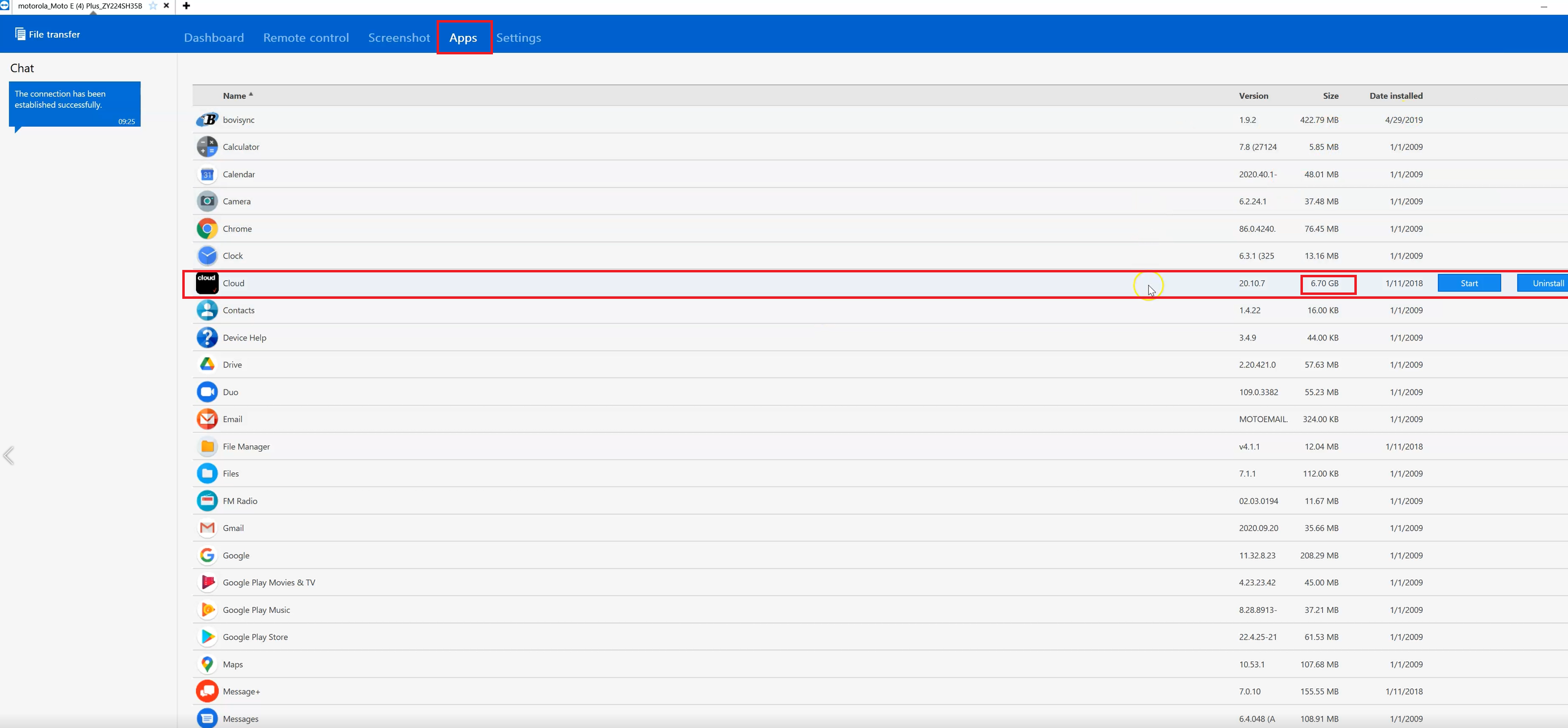 Note: TeamViewer allows you to see some apps and settings on the device right from TeamViewer. Find the app that is using up a majority of space.