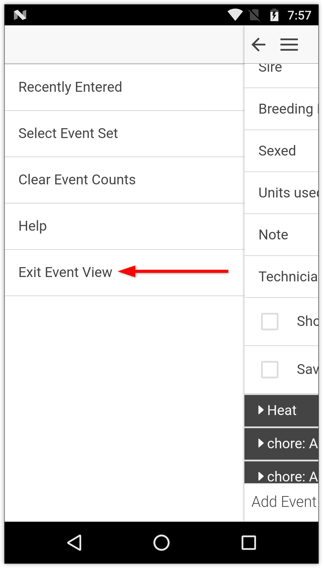 this change when you sync the phone. To do so, navigate back to the home menu of the app by pressing the 3 lines in the upper left corner and then select Exit Event View.