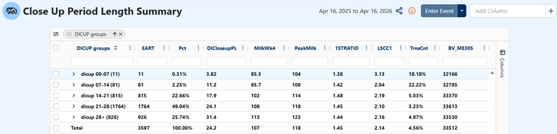 number of days since calving. Measures such as 30 DIM or 60 DIM are often used