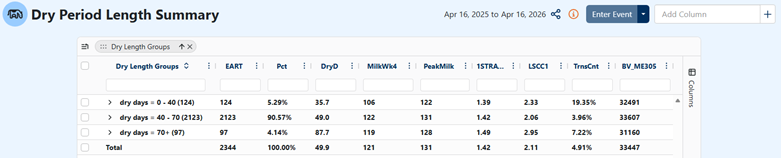 production in approximately 50–59 day and 60–69 day dry-period groups.