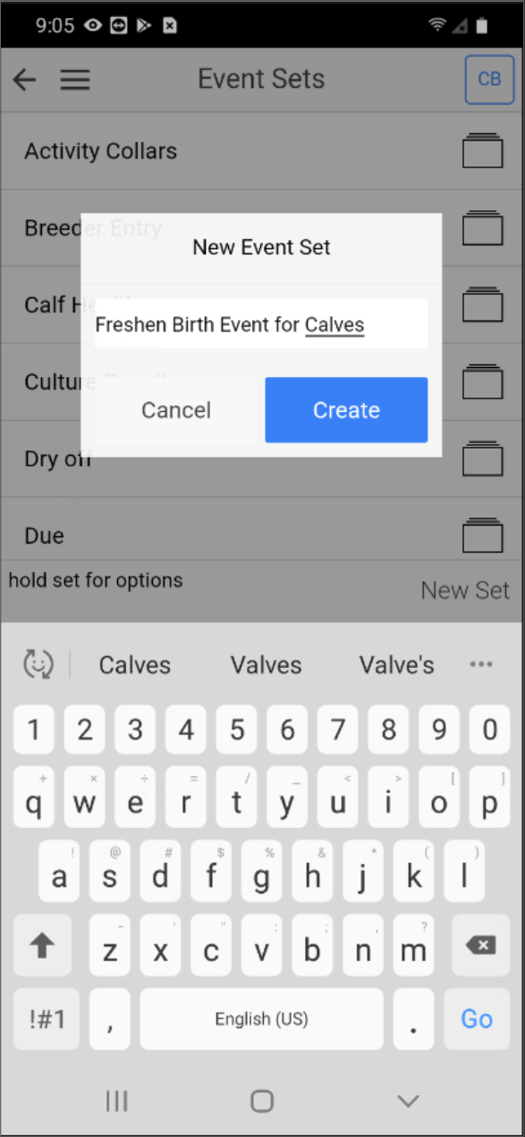 7)Haga clic en "Agregar evento" y agregue los eventos que le gustaría registrar para los terneros