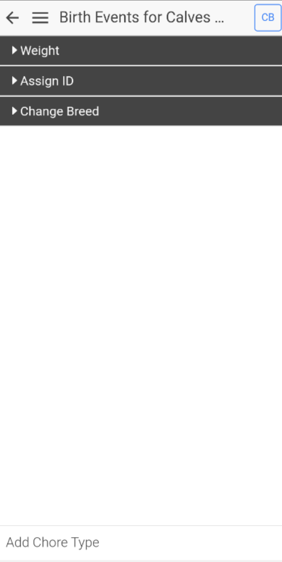 6) Configurar eventos de nacimiento para terneros: le permitirá ingresar eventos en el ternero (por ejemplo: pesos, ID de asignación, movimientos, raza, etc.)